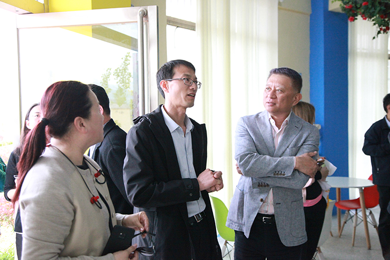 泽爱慈善会陈捷荣誉会长、冯仪会长与蒙山实验中学的徐校长交流
