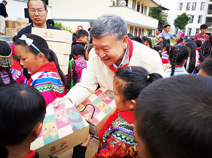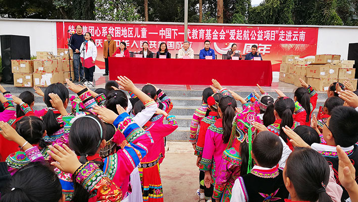 “我们是共产主义接班人,继承革命先辈的光荣传统”……10月10日下午,在嘹亮的少先队队歌中,中国下一代教育基金会“爱起航”公益项目走进云南捐赠仪式在楚雄州武定县香水小学举行,中国下一代教育基金会副理事长孙成华、云南省教育厅关心下一代工作委员会副主任杨丽、中国下一代教育基金会副秘书长李亚茹、特步集团总裁特别助理王强、武定县教育体育局局长陈洁、武定县委常委、县人民政府副县长周廷质出席仪式,中共楚雄州委教育工作委员会副书记王艳萍主持仪式。
