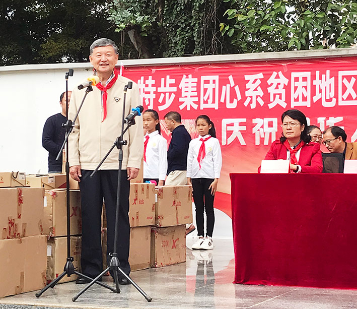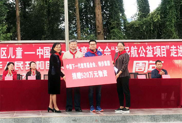 近年来,特步集团和中国下一代教育基金会紧密合作,积极开展社会公益捐赠活动,已向山东、四川、贵州、云南、内蒙古、宁夏、青海等8省、30多个市县捐赠了价值近4700余万元的运动装备,惠及900余所学校,受益人数17.8万人。