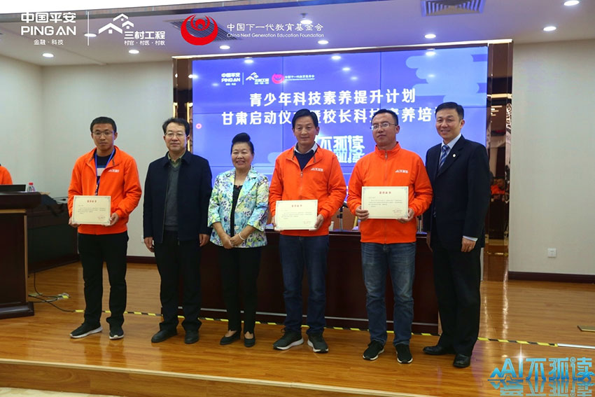 10月31日,由中国下一代教育基金会、中国平安集团、甘肃省教育厅联合主办的“‘AI不孤读’——青少年科技素养提升计划甘肃启动暨校长科技素养培训”结业仪式在兰州举行,来自定西、陇南、平凉、临夏4个市州11个县区的75位村小校长受训,75所村小的学生将最终受益。中国下一代教育基金会副理事长沈建国,甘肃省教育厅总督学陈继宗,平安人寿甘肃分公司总经理彭若杰出席本次活动。