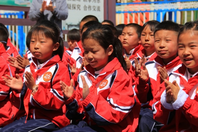 会宁县新庄镇中心小学的学生们穿着崭新的运动服参加学校活动