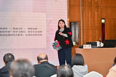 主题工作坊环节设置了5大特色专题,学员按需自主选择参与。清华大学附属小学李强老师的“让儿童站立科学教育正中央”、浙江省青少年科技教育协会理事刘俊的“分层筑基?融合创新:AI视野下的人工智能与集成电路教学实践”、中国教育装备行业协会教育信息化分会副秘书长赵博的“人工智能教育的实施策略与应用案例”等专题,从多元维度聚焦核心素养培育,引导教师设计创新性教学项目。杭州八一学校校长伍小斌分享的“把课堂变成引力场”实践策略,浙江省教育厅教研室沙琦波老师主讲的“凸显学科实践的科学教学”,为一线教师解决教学痛点提供可操作的实用方案,现场研讨氛围热烈,思想碰撞持续不断。