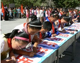 ![]() 新疆五家渠市在校园中开展的低碳生活签名仪式 |