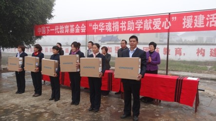 "中华魂捐书助学献爱心”援建活动,是一个帮助有需求的贫困地区中小学建立 “中华魂书屋”、“中华魂多媒体互动阅读教室”,以及向农村留守儿童捐赠“中华魂爱心书袋”的公益活动,旨在帮助改善老少边穷地区孩子们的阅读环境,引导、帮助他们养成良好阅读习惯。该活动还计划在5年内,分期分批为全国老、少、边、穷地区中小学援建10000所爱心图书馆。