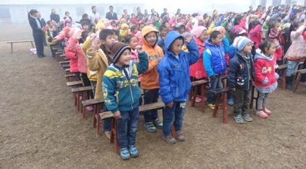 勐海县勐遮镇曼恩小学的孩子们在捐赠仪式现场