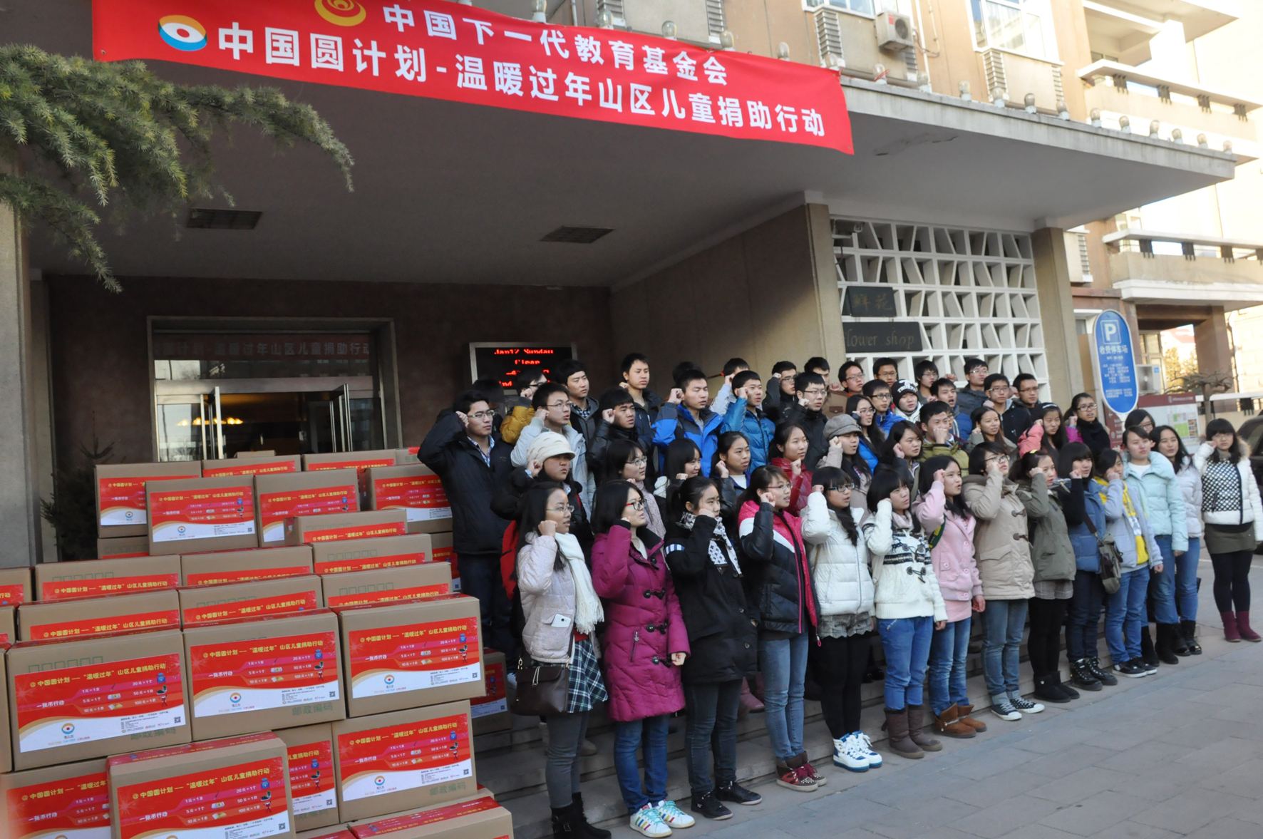 2014年1月12日,由中国下一代教育基金会圆计划办公室发起的“温暖过年”山区儿童捐助行动,在北京正式启动。近百名志愿者代表在现场领取爱心包裹,并进行了宣誓。作为圆计划的“圆梦使者”,他们将会亲手把凝聚社会各界的每一份爱心物资都送达到家乡最需要帮助的留守儿童手中,让孩子们感受外面世界的关爱,过一个温暖的新年。