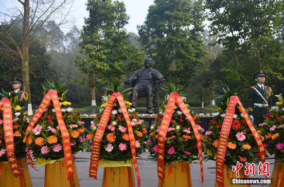 中国下一代教育基金会幸福教育基金顾问曹志斌代表基金会向邓小平铜像敬献花篮