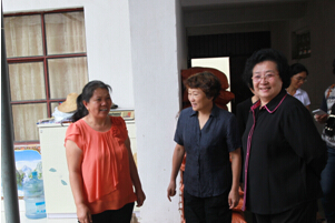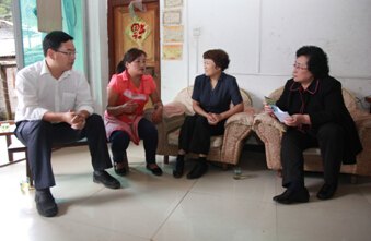 基金会副理事长兼秘书长王萍和云南省妇联领导与尹庆芬交谈