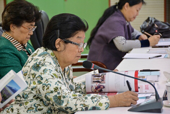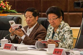 顾秀莲名誉理事长和田淑兰理事长认真翻阅龙泉驿区