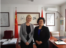 4月16日,哥本哈根文化市长Pia Allerslev女士一行来我会访问,王萍副理事长兼秘书长向来访人员介绍我会开展的公益项目情况