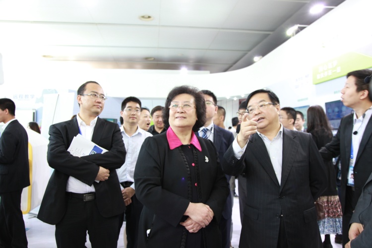 ![]() 中国移动通信集团副总裁李正茂向王萍秘书长介绍中国移动所做的公益活动 |
