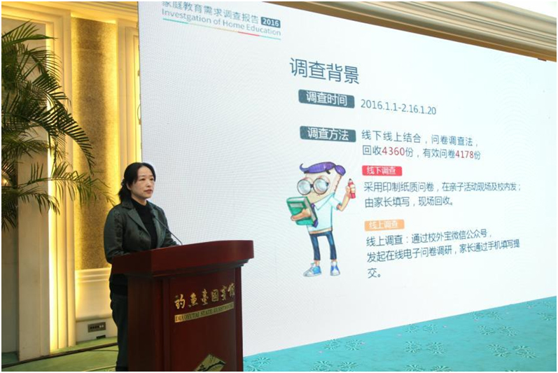 上海社会科学院社会学所副所长陈建军在启动仪式上,向大家展示了上海家庭教育需求专项调研的部分结果。数据表明,大部分的家长期待中国传统文化的回归,并且随着上网习惯的普及,越来越多的家庭希望借由移动互联网获得及时便捷的资讯和知识,而以互联网+为理念编撰的中华百科亲子读本《我是小小中国通——十万零一个为什么》也在当天正式出版,将这些亲子读本同时也向港澳台地区及世界部分城市进行推广和传播。