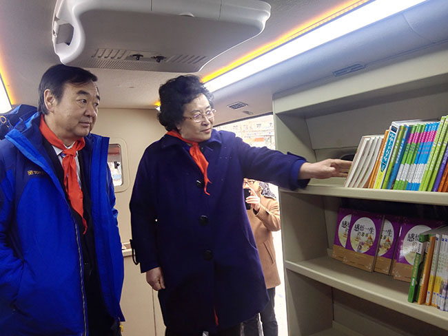 王萍秘书长与赵景光书记参观“移动七彩书屋”