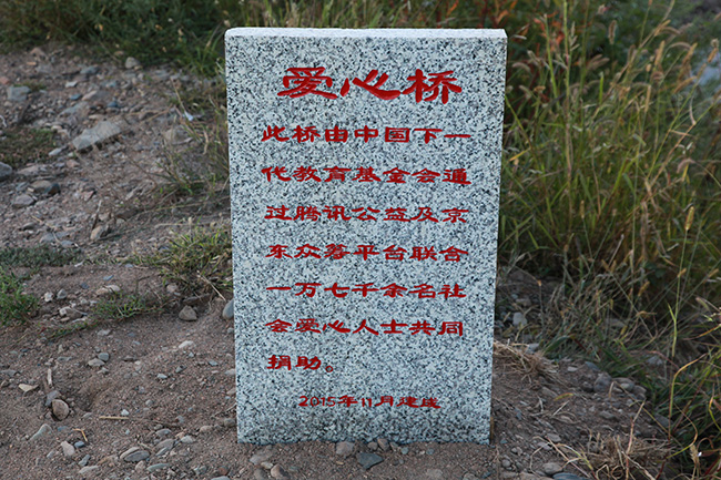 2015年11月底,由腾讯公益、京东众筹平台一万七千多名爱心人士捐建的“爱心桥”建成。当地村民自发地在桥头树起了一块写有“爱心桥”和感谢爱心人士等文字的石碑。