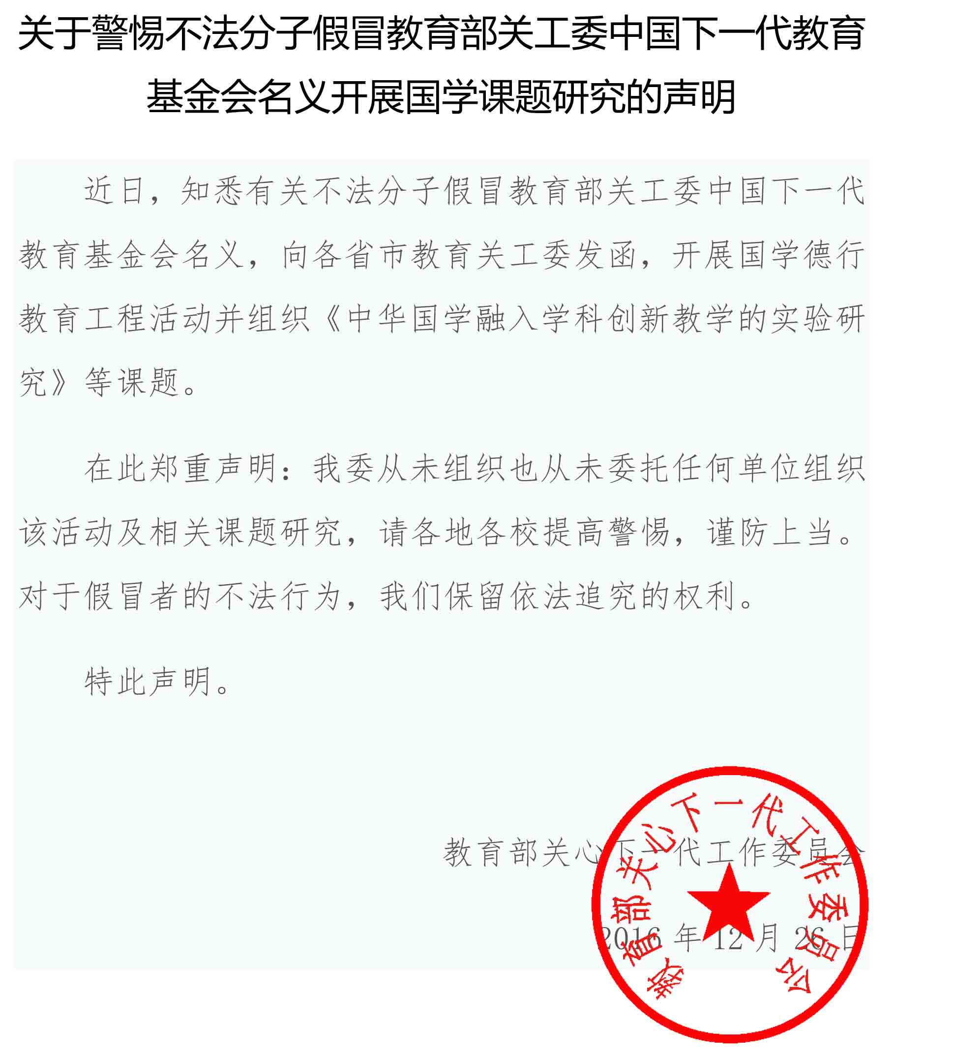 关于警惕不法分子假冒我会名义开展国学课题研究的声明
