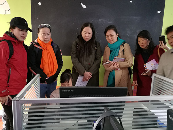 “留守儿童帮扶中心”负责老师向考察组演示计算机课的教学效果