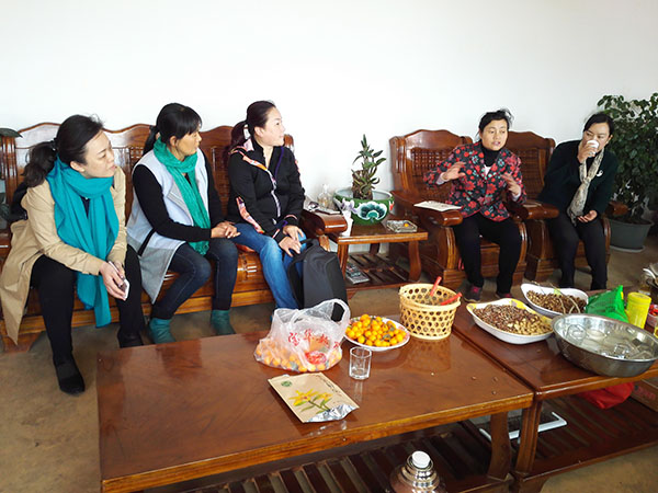 考察组走访农户家庭,与农户亲切交谈,了解助学循环金使用情况