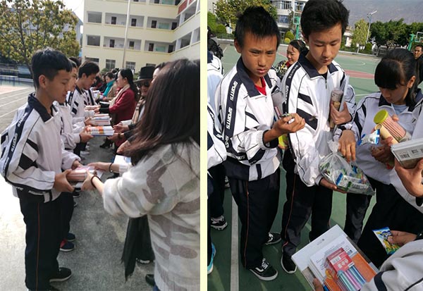 考察组在南涧县四中召开座谈会。并举行捐赠仪式,向学生代表赠书。