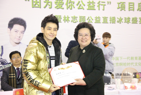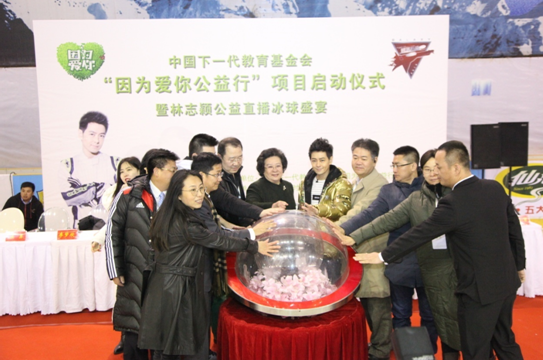 2017年3月19日,中国下一代教育基金会在北京市高碑店浩泰冰上中心举行了“因为爱你公益行”项目启动仪式。项目爱心大使林志颖携其 “银河精英猎手队”的冰球小子们与“浩泰红魔队”进行了冰球友谊赛,并进行了公益直播。本次直播的收入将全部捐赠给“因为爱你公益行”项目,从心理健康和家庭教育两方面帮助留守儿童健康成长。