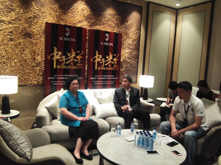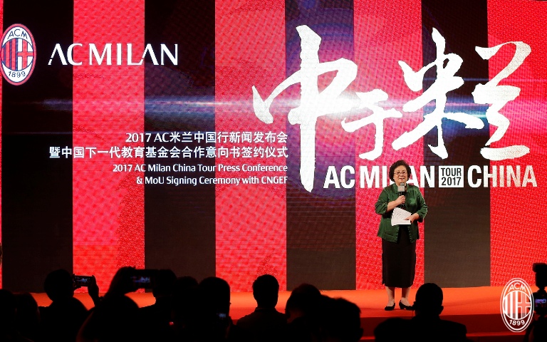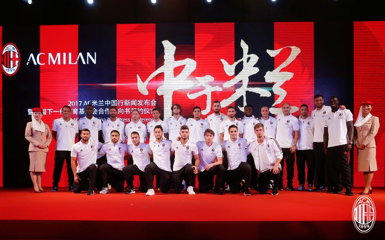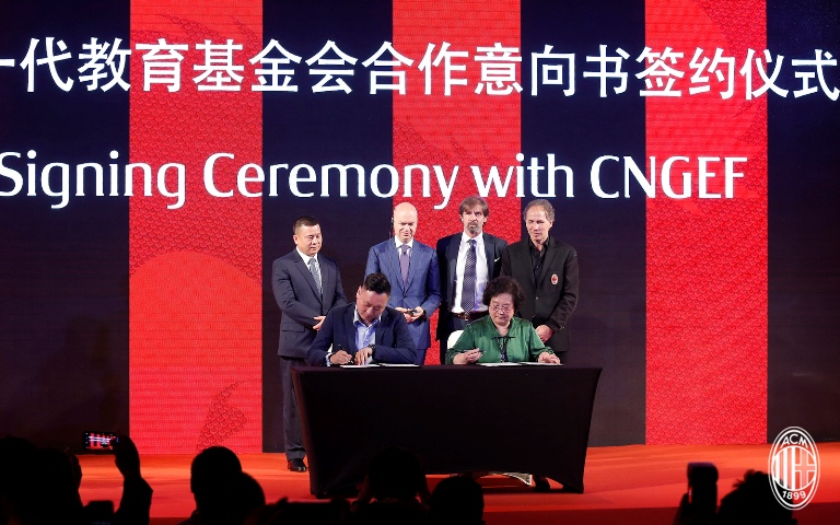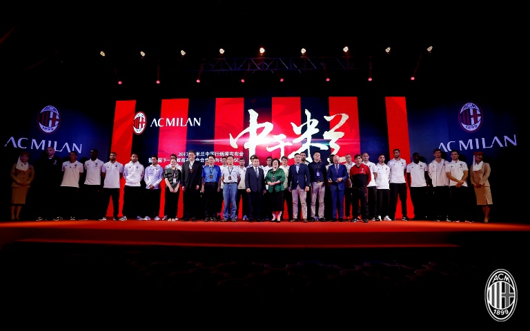 2017年7月16日下午,借来华参加2017国际冠军杯比赛之机,意甲豪门AC米兰俱乐部在广州举办“中于米兰”AC米兰中国行新闻发布会暨中国下一代教育基金会合作意向书签约仪式。这是AC米兰在今年4月被中资收购完成后在中国的首次亮相。国家发改委城市和小城镇改革发展中心城市文化体育部王辰宇,广东省教育厅关心下一代工作委员会主任王玉学,中国下一代教育基金会理事长王萍,AC米兰俱乐部主席李勇鸿,俱乐部董事韩力、许仁硕,俱乐部总经理法索内,AC米兰球队主教练蒙特拉和包括夏季新签外援在内的所有队员,以及教育部校园足球专家委员会委员、足球名宿张路等人悉数出席。