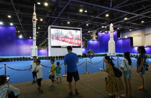 7月21日上午,由中国下一代教育基金会与中国航天科技集团公司所属中国航天科技国际交流中心共同主办的“中国航天青少年科普展(杭州站)”,在杭州市国际博览中心开幕。