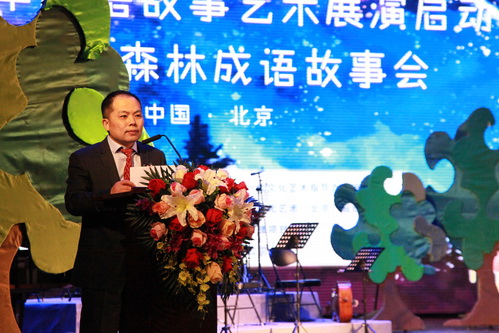 12月16日上午,由京演文化传媒出品的《音乐森林成语故事会》在民族文化宫大剧院欢乐上演。演出开始前,由中国关心下一代工作委员会健康体育发展中心文化艺术指导办公室、中国下一代教育基金会主办,北京京演文化传媒有限责任公司、东方星空文化艺术(北京)有限公司、天街小雨文化传播(北京)有限公司、大胜环宇(北京)体育文化发展有限公司承办的“青少年成语故事艺术展演启动大会”也在民族文化宫大剧院正式开启?;疃家庥弥泄某捎镂幕?ldquo;表演短片、成语故事绘画、朗诵讲述、趣味竞技、文艺节目”艺术方式对全国青少年进行国学艺术教育,激发孩子学习中华传统文化的热情。随后,嘉宾上台为青少年成语故事艺术展演启动揭幕。