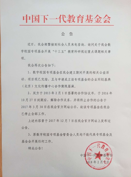 3、原数字校园专项基金管委会人员均不能代表专项基金及基金会开展任何工作。