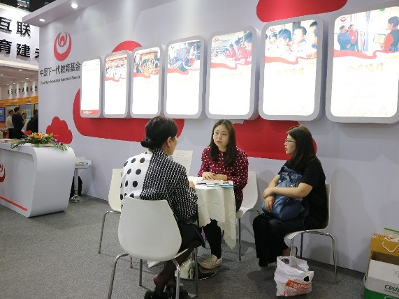 中国下一代教育基金会设立展台,展示近年来开展的公益项目,扩大对外宣传影响力。本届展示会展示了教育装备领域各各方面的产品,其中包括智慧教室、智慧校园、教育云产品,创客和STEAM产品,人工智能、穿戴设备、无人机等创新产品?;鸹嵩诒敬握够嵘?,与相关教育设备企业和热心公益人士进行了交流,寻求相互合作的机会。